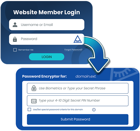 WordCrypt’s patented algorithm combines the domain name, your secret phrase and PIN number, and your unique registration key to generate and regenerate your encrypted password as needed just for that site. Even under court order, WordCrypt cannot possibly reveal any user’s password, passphrase, PIN, or login activity.